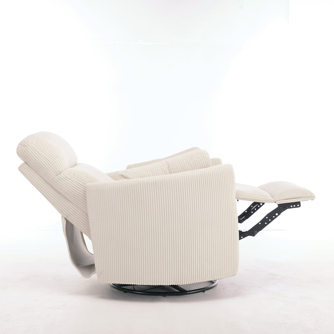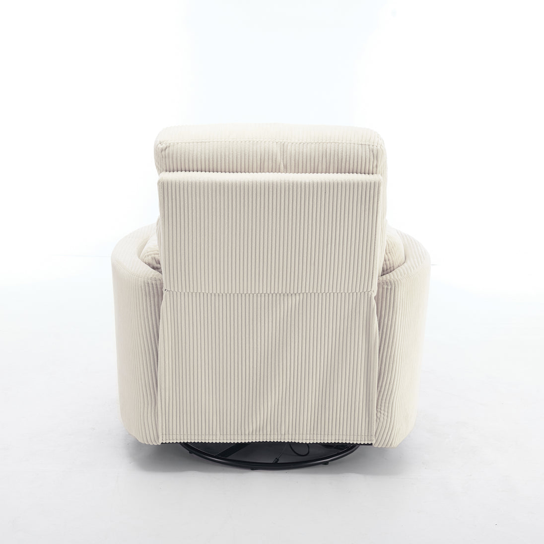 - Soft Ribbed Upholstery – Cozy beige fabric with subtle texture.