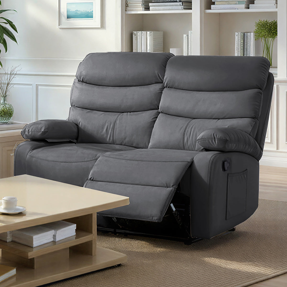 Upgrade your living room with this ultra-comfortable 2 seater reclining sofa set. Upholstered in smooth dark grey fabric, this sofa combination features plush, overstuffed cushions and easy manual reclining for full-body relaxation. Perfect for movie nights, family gatherings, or everyday lounging.