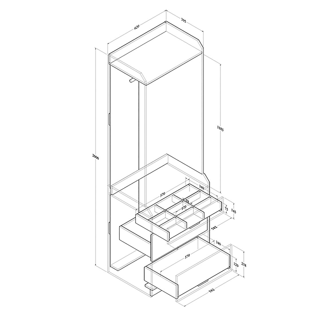 Transform your bedroom with the 3 Drawer Open Wardrobe, a perfect blend of contemporary design and practical storage. Crafted with clean lines and a modern aesthetic, this open wardrobe is ideal for those who want to maintain a sleek, uncluttered space while still having ample room for their clothing and accessories. Its compact yet spacious design makes it a smart choice for both small and large bedrooms.