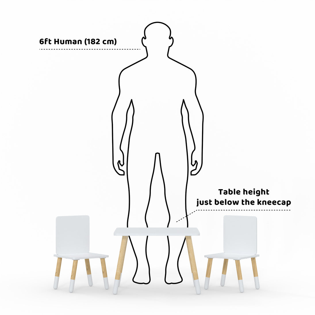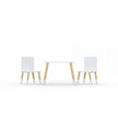 Bring style and functionality to your child's space with this modern 3-piece furniture set. The contemporary design features clean lines and a minimalist white finish that complements any room decor. The set includes a sturdy table and two matching chairs, all supported by natural wood-effect legs with white-dipped ends for an extra touch of charm. The smooth surfaces are easy to wipe clean, making it perfect for various activities from arts and crafts to snack time. The child-sized proportions ensure comfortable seating, while the durable construction stands up to daily use. The versatile design works beautifully in playrooms, bedrooms, or living spaces, providing your little one with their own dedicated spot for creative activities, learning, or meals. The contrasting white and natural wood elements create a sophisticated Scandinavian-inspired look that grows with your child.